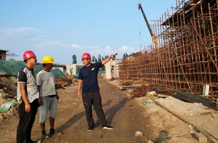 蒙山大街與濱河西路互通立交工程涵蓋橋梁工程和道路工程兩個部分,是四公司近些年來承建的難度較大的一項橋梁工程。該工程建設(shè)任務(wù)重,施工難度大,公司領(lǐng)導(dǎo)高度重視,委派李素偉為項目經(jīng)理。有人勸他不要接這“燙手的山芋”,可他卻說:“我是一名黨員,沖鋒在前是每個黨員干部義不容辭的責(zé)任。”憑借這樣的擔(dān)當(dāng)和勇氣,他不畏艱難,勇挑重?fù)?dān),迅速組建項目部,第一時間帶領(lǐng)施工人員進場施工。進場后,他主動協(xié)調(diào)各方關(guān)系,上午到濱河公園產(chǎn)權(quán)單位,協(xié)調(diào)苗木遷移問題,下午趕赴設(shè)計院協(xié)調(diào)地勘與圖紙設(shè)計工作,為工程推進贏得了寶貴時間。施工中,為全面推進工程進度,他充分利用一切資源,采取“多點開花,重點投入”的施工方式,提高工作效率。同時,為避免地下管線施工與其他工序沖突,他安排技術(shù)人員對現(xiàn)狀地下管線進行詳細摸排,及時確定煤氣、自來水、國防光纜等管線的準(zhǔn)確位置,并將相關(guān)數(shù)據(jù)提供給設(shè)計院,為工程后續(xù)施工奠定了堅實的基礎(chǔ)。