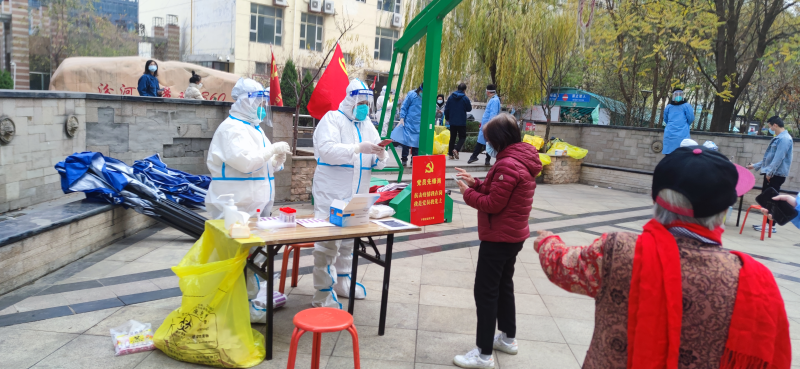 11月21日,機(jī)關(guān)黨總支號召全體黨員干部就地轉(zhuǎn)崗,黨員高欣、張曉風(fēng)、李萍、麻鄭霞、武婷婷,預(yù)備黨員張玉葉等同志,紛紛化身“志愿紅”“大白”沖鋒在戰(zhàn)“疫”一線,協(xié)助社區(qū)開展維持隊(duì)伍秩序、噴灑消毒液、核對人員信息、掃描檢疫碼、采集核酸等工作,展現(xiàn)了新時代“市政人”的風(fēng)采。