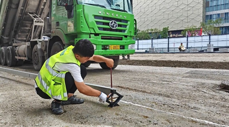 “以工匠精神,打造城市街道的靚麗名片”。項(xiàng)目部對(duì)所有進(jìn)場(chǎng)花崗巖板材進(jìn)行逐塊檢驗(yàn),確保板材表面平整度、缺陷指標(biāo)符合設(shè)計(jì)要求,讓石材自帶“高顏值”。施工中,施工人員嚴(yán)格控制混凝土基層表面平整度偏差,確保壓實(shí)度達(dá)到95%以上;鋪貼階段采用“試鋪—校正—精鋪”的工藝流程,嚴(yán)格按配比配制干硬性水泥砂漿;鋪貼時(shí)使用橡皮錘從板材中心向四周均勻輕擊,確保砂漿飽滿(mǎn)密實(shí),相鄰板材高差控制在正負(fù)1毫米以?xún)?nèi),接縫寬度保持均勻一致。鋪裝完成后利用專(zhuān)用填縫劑進(jìn)行嵌縫處理,并實(shí)施保濕養(yǎng)護(hù),確保鋪裝層達(dá)到平整美觀、堅(jiān)固耐用的質(zhì)量要求。