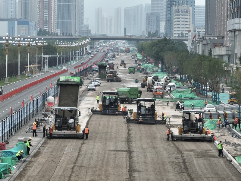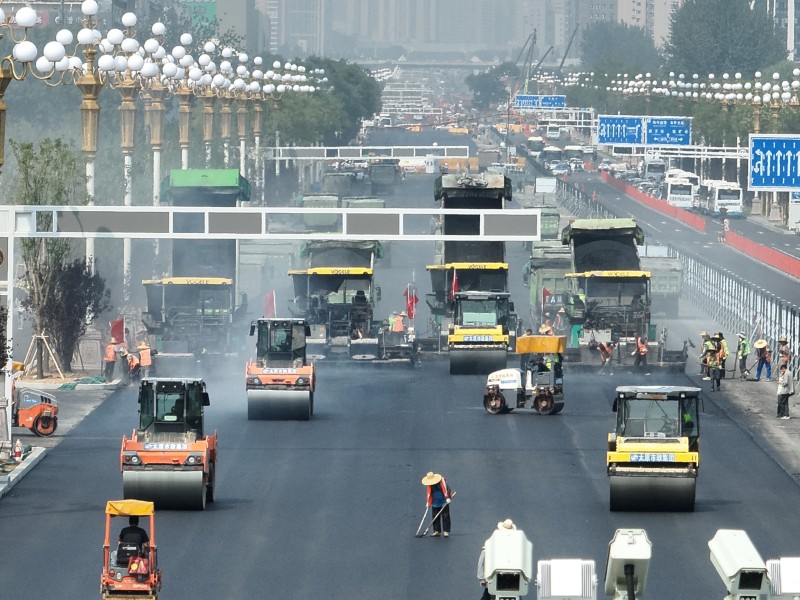 面對全長4.3公里的施工戰(zhàn)線,租賃公司和路面公司展現(xiàn)了高度的專業(yè)協(xié)作與責任擔當。租賃公司科學調(diào)度大量大型機械設備,包括銑刨機、壓路機和攤鋪機等,按照施工計劃分批次進場,確保了“分段流水、平行作業(yè)”模式的高效運轉(zhuǎn)。通過精準匹配機械供應與作業(yè)面規(guī)劃,他們?yōu)楣こ烫峁┝藞詫嵉脑O備保障,同時嚴格執(zhí)行機械操作安全規(guī)程,有效管控高風險作業(yè)環(huán)節(jié)。在機械設備充足的同時,路面公司聚焦道路施工的質(zhì)量與精細化管理。在完成地下管網(wǎng)改造工程后,他們迅速推進路面工程施工進度,實施水穩(wěn)、瀝青鋪筑工作。面對高溫和雨季的持續(xù)挑戰(zhàn),路面公司施工人員堅守一線,嚴格把控每道工藝,以精益求精的施工質(zhì)量和爭分奪秒的施工速度圓滿完成施工任務,完成全線水穩(wěn)和瀝青的攤鋪工作。租賃公司和路面公司通過與施工單位的緊密配合,展現(xiàn)了同心協(xié)力、協(xié)同作戰(zhàn)的施工風采,助力迎澤大街(西段)煥新升級,彰顯了太原市政集團的專業(yè)水準與責任使命。