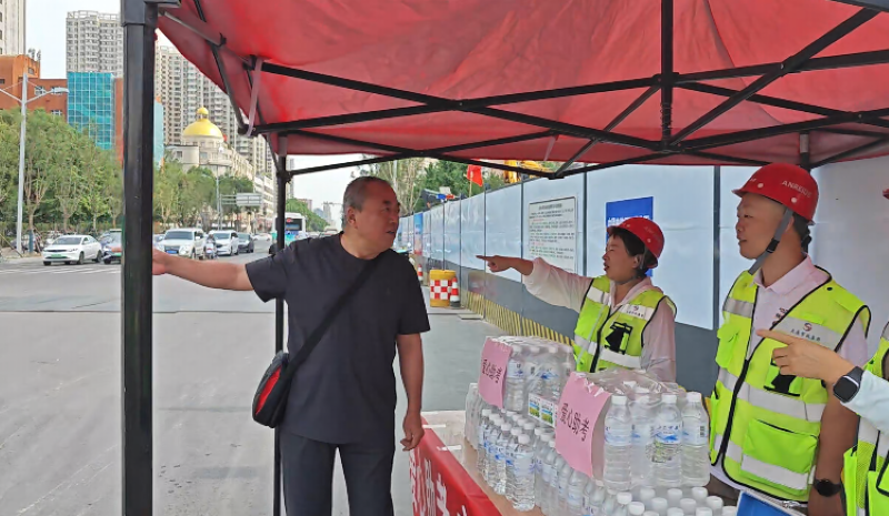 施工過程中,太原市政集團作為主要施工單位,積極統(tǒng)籌協(xié)調(diào),主動與園林、電力、自來水、熱力等平行施工單位溝通,在全力推進工程進度的同時,為各參建單位留好施工作業(yè)面,合理安排平行、交叉作業(yè),確保工程順利推進,跑出施工“加速度”。為妥善平衡民生保障與工程建設雙重需求,太原市政集團主動擔當、積極作為,主動聯(lián)動交通、城管等部門,采取多項舉措,避免影響周邊居民的正常生活。在施工中遵循“修路不添堵”原則,精心制定交通組織方案,設置應急通道、便民通道和低噪音設備,并安排交通協(xié)管員在地鐵口等關鍵部位現(xiàn)場指揮、引導行人,為市民出行提供便利條件,將“讓市民少繞一米路,少踩一個水坑”融入深夜巡查便道安全的腳步,化作施工與民生和諧共生的溫暖注腳;實施“半幅施工+分段施工+動態(tài)導改”策略,與交警部門合作,優(yōu)化交通信號燈配時,有效緩解施工對市民出行的影響;中高考期間,積極開展“為夢護航 愛心助考”志愿服務活動,全線工地按下“靜音鍵”,在關鍵路口設立助考點,配備礦泉水、防暑降溫藥品等,并為考生開放綠色通道,以實際行動助力中高考;在施工現(xiàn)場設置安全警示標志和施工公告牌,及時告知市民施工進展和注意事項,增強市民對施工的理解和支持;組織施工人員進行城市家具的及時進場和質(zhì)量檢驗工作,在全線開展城市家具安裝作業(yè),將一批兼具現(xiàn)代風格與太原特色的公交站臺、休閑座椅、分類垃圾箱等設施安裝到位,這些融合功能與美學的城市家具,已成為迎澤大街沿線的新亮點,不僅提升了城市空間的品質(zhì),更展現(xiàn)出太原深厚的人文關懷與現(xiàn)代城市風貌。全體施工人員以高度的責任感和使命感,將品質(zhì)與關懷融入到每一個細節(jié)中,用實際行動詮釋了“以人為本,和諧共建”的施工理念。