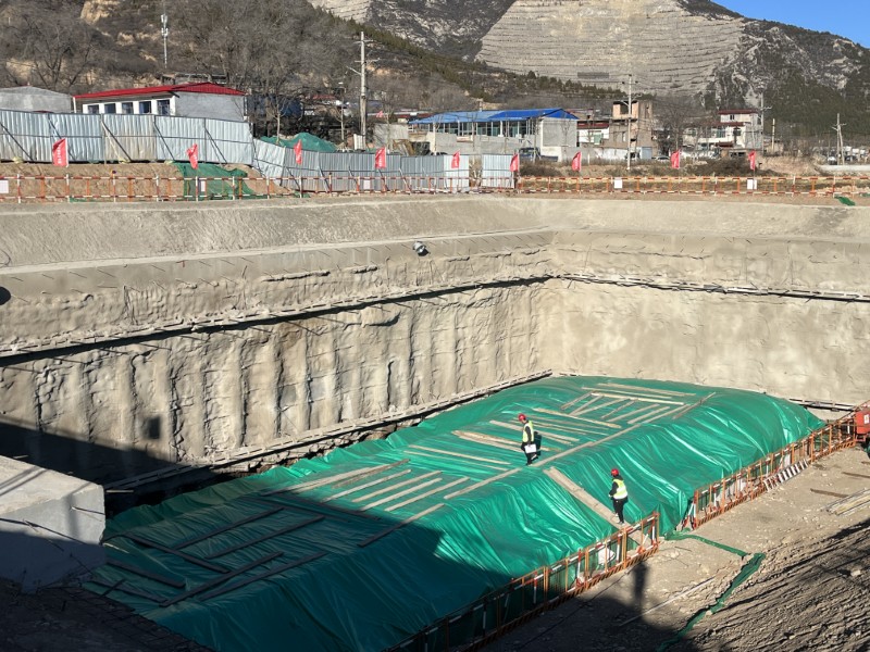 項目部組建專項指揮工作組,進行全方位、全流程精細化管理,重點防止出現(xiàn)混凝土水化熱過高、內(nèi)外溫差較大,導致結(jié)構產(chǎn)生裂縫的情況。前期重點優(yōu)化混凝土設計配合比,從原材優(yōu)選入手,減少混凝土水化熱影響;中期采用分層分段澆注方式,保證混凝土澆筑連續(xù)性,嚴格把關鋼筋及模板拉桿連接、冷卻水管位置等細節(jié)質(zhì)量,確保澆筑質(zhì)量達標;同時在混凝土內(nèi)部及表面布置測溫點,及時觀察記錄溫度變化,為澆筑施工提供堅實保障;后期進行毛毯覆蓋灑水養(yǎng)生、內(nèi)設循環(huán)冷卻管路,嚴格控制水的流量流速,流量范圍