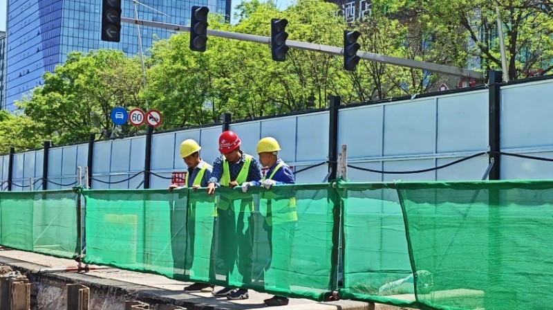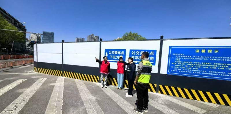 施工以來,集團公司全程安排專人值守地鐵口交通導(dǎo)行,多舉措升級現(xiàn)場安全防護設(shè)施——開辟行人安全通道,協(xié)調(diào)劃定“公交專用通道”,在井蓋四周設(shè)置緩坡與明黃警示帶,為圍擋加裝柔和燈帶……以細(xì)微處的貼心舉措,實現(xiàn)“施工便民不擾民”。