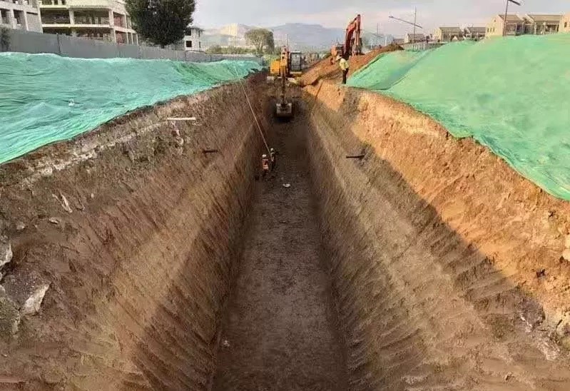 該工程道路兩側(cè)緊鄰沿線村莊的農(nóng)田、大棚,施工作業(yè)面狹窄,大量開挖土方因場地有限無法進(jìn)行放置,嚴(yán)重影響施工正常推進(jìn)。目前,項(xiàng)目部正在加快解決征地問題,積極與業(yè)主、村委會(huì)等溝通聯(lián)系,爭取盡快突破場地面積小的施工難點(diǎn),擴(kuò)大施工作業(yè)面積,便于大量土方堆放,為后續(xù)施工贏得更多時(shí)間。在溝槽開挖施工時(shí),由于工程全線平均溝槽深度為8米,在道路西村段深度達(dá)到9米,但因長臂挖機(jī)的機(jī)械臂長度為5米,無法達(dá)到溝槽底部進(jìn)行土方外運(yùn)。項(xiàng)目部果斷采取有效措施,先利用一臺(tái)挖機(jī)進(jìn)行放坡作業(yè),將整體高度降低2.5米,在確保施工安全的前提下,再利用兩臺(tái)挖機(jī)下到下降高度處,接力倒運(yùn)土方到路面的4臺(tái)鏟車進(jìn)行清運(yùn),保證整個(gè)土方外運(yùn)工序銜接緊密、流水作業(yè),加快工程進(jìn)度。同時(shí),因施工南段道路兩側(cè)位于農(nóng)作物種植地帶,土質(zhì)屬于濕陷性黃土,無法直接用于道路施工,為加強(qiáng)工程質(zhì)量管控,項(xiàng)目部針對整個(gè)施工斷面進(jìn)行了清表及換填處理,確保道路施工符合質(zhì)量標(biāo)準(zhǔn)。